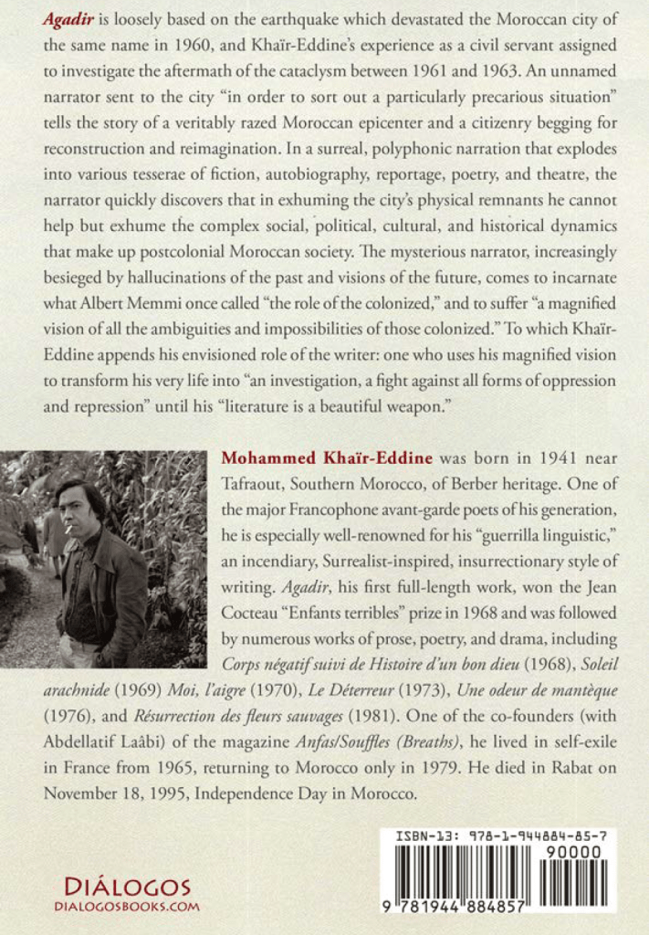 Synopsis and Biography for back cover of Agadir by Mohammed Khaïr-Eddine