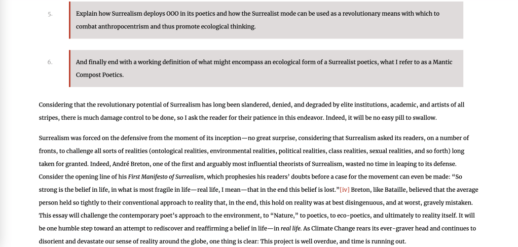 ACADEMIC ARTICLE ON SURREALISM, ONTOLOGY, AND ECOLOGY